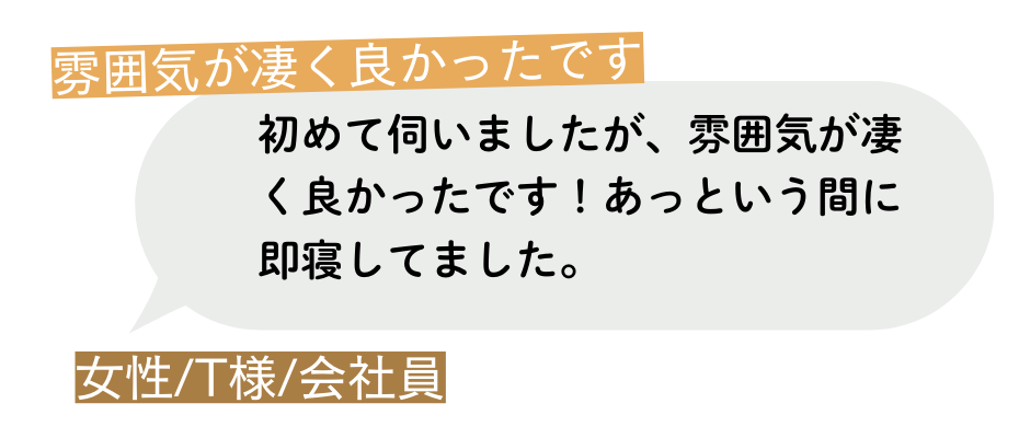 お悩みの確認/最近の睡眠や疲労の状態/圧の強さ/施術を避けて欲しい部分/など