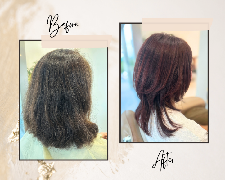 毛量の多さやパサつき毛にも、落ち着いた大人の印象へ。